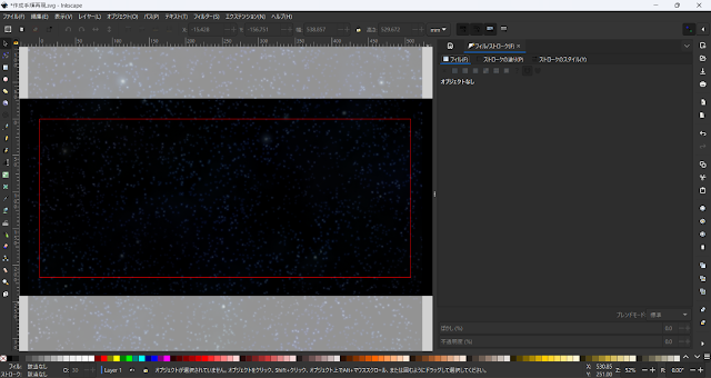 ただ、この素材は星の輝きが明るすぎますので、「フィル/ストローク」ダイアログから不透明度を低くします。